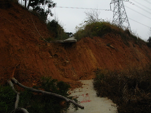 10:52 產道路斷,有高約三公尺的落差,還好已設有粗繩可攀上。 |