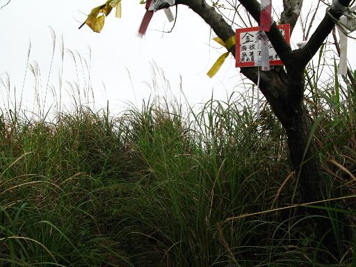 天線群,從右側小徑深入至最後一座,然後開始轉為山路往下,往金交椅山東北峰約3分。下切不到10公尺,應往右偏高處走幾公尺,再繼續循稜往下,沿途多是走在竹林旁,雖然雜草多,但還算容易走。H73m |