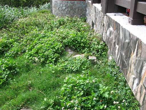 竹園旁石階步道叉路,石階步道往左往右都有路條但無標示,決定取左。這段步道沿途多農地,因此路況還不錯,下行至溪邊後再陡上往下青礐。H348m |