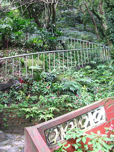 電塔對面步道口,循步道繞回明德宮。中途本有山路可下往經國學院(原德育護專),但入口已不清楚。H143m |
