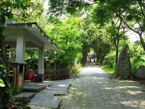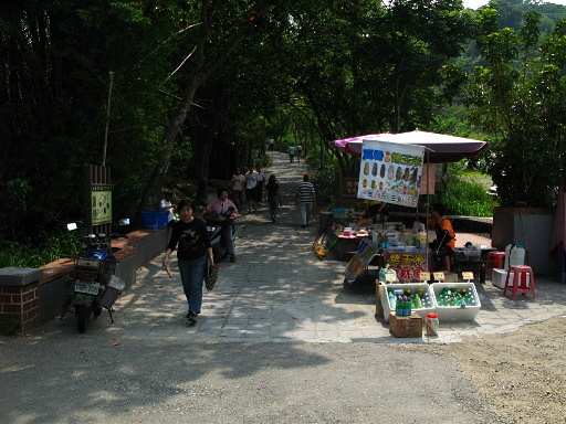 登廟步道入口,旁邊設有停車場,有些攤販。進入後才發現這條步道與行前的想像差異頗大,步道一開始其實是條產業道路,幸好沿途林蔭頗多,不至於太無趣。H155m |