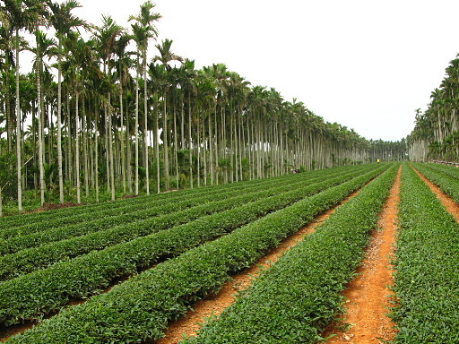 茶園產道路底,松柏坑山基石在茶園中,左前方位,一時不察竟直行,稍後才望見茶園中明顯的基石位置,退回路底改取左線,約30公尺遇三角柱仙人掌,右轉入茶園小徑。H434m |