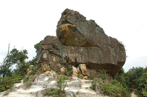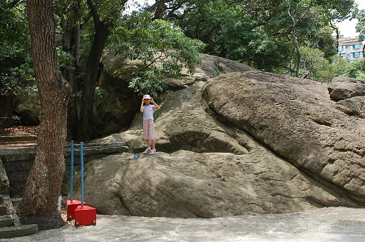 熱海岩場,兩旁各有一條小山路陡下,可通溫泉路銀光巷。巨岩頂端展望極佳。回樹林內休息。H195m |