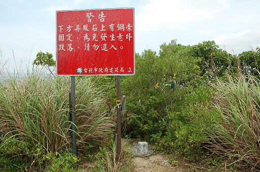 軍艦岩,188m,北市「市481」鋼標基點嵌在岩石上。岩石上展望極佳,眺望崇仰路高級社區,俯瞰天母、石牌地區。續行有步道可下往榮總與陽明大學。H199m |