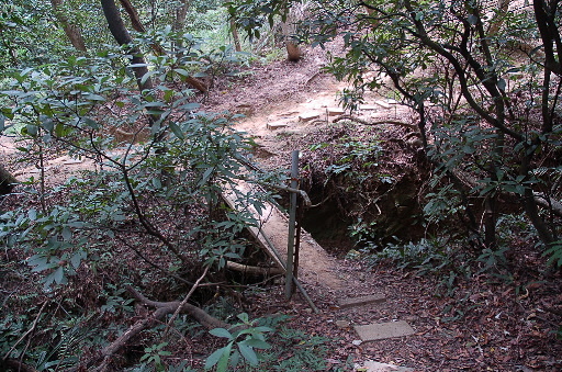 小木橋叉路,取右循土路步道往上,再循山腰路往照明寺。H148m |