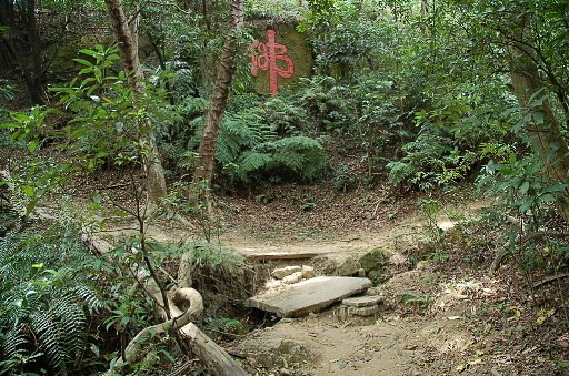回到中和禪寺開山住持墓園鐵門,發現有小徑可進入。內有『淨覺釋子善福普鑾大師佳城』石碑。續行有石階步道下往中和禪寺。最後從中和禪寺靈光塔旁出來。H90m |