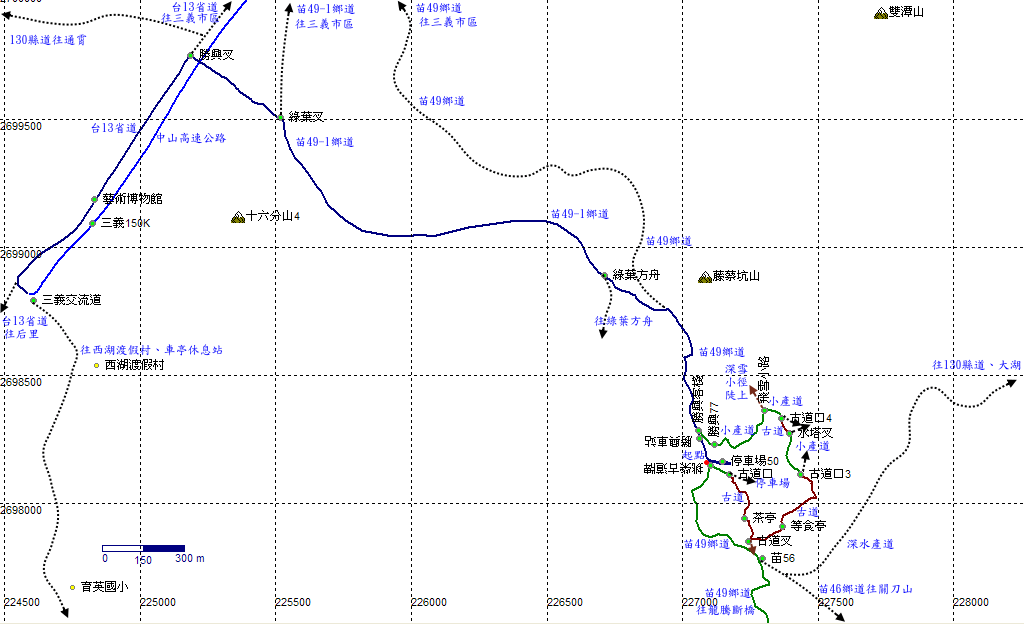 中山高三義交流道(150K),右轉接台13往北,再右轉接苗49-1鄉道,再接苗49鄉道往勝興車站。H340m |