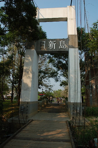 日新島,明德水庫中的小孤島,不到10分鐘即可繞一圈,透過兩座吊橋與外界連接。島上的環境還不錯,就是小了點,可資兌換的食物選擇也很有限。H78m |
