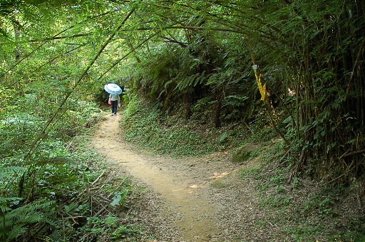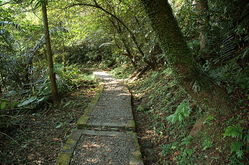 三貂嶺瀑布叉路,右往三貂嶺瀑布2.01km,過鐵軌後右側即是已廢棄的碩仁國小。循著民宅區階梯步道往上,多了新指標已較不會走錯。剛開始的步道有些坡度,但不長。不久即轉為一路寬平好走的碎石步道,末段為土路步道。H120m |