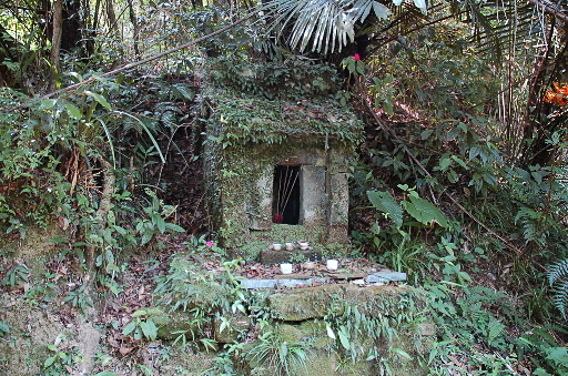 觀瀑平台,可眺望三貂嶺瀑布群中水量最豐沛的合谷瀑布。在觀瀑台旁邊有條小路,拐個彎就可見到這條古道的古蹟,姑媽廟,古老的石砌小廟。H179m |