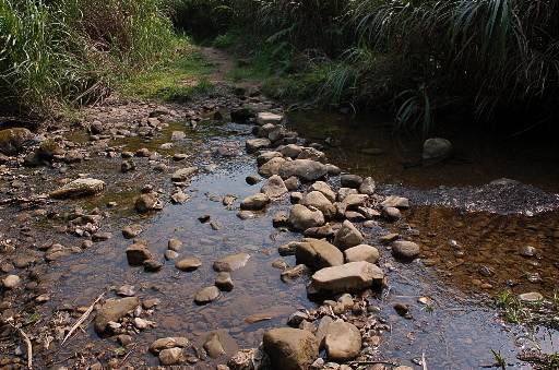 再度過溪,為另一支流,三貂嶺瀑布群的另外兩座瀑布就在此溪上游,踏石過溪仍輕鬆,此處有殘存的大木橋。續行的步道一路循小溪的右岸上行,路況仍佳。H177m |