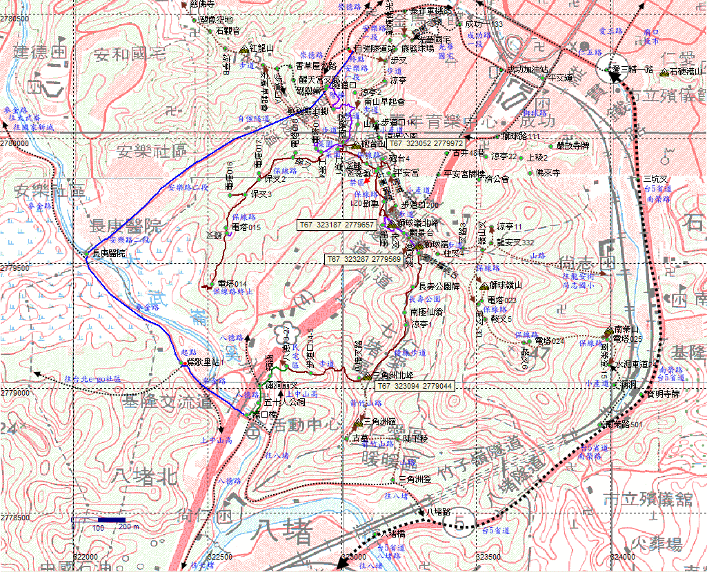 獅球嶺隧道,步道從先生祠旁下來,獅球嶺隧道有義工解說員,頗熱情,已參觀過數次,今日省略。循崇德路往外走,127號民宅旁右轉循小路下往安樂路。H55m |