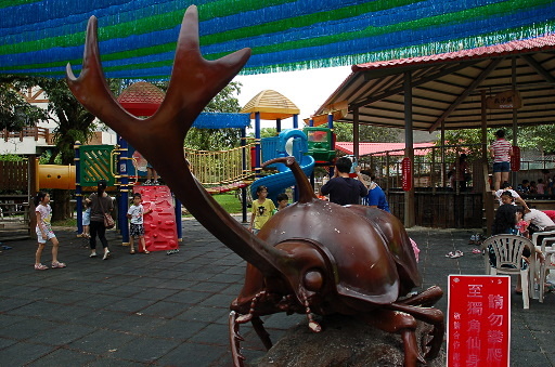 獨角仙休閒農場,內有大草皮與可愛動物,還有一些遊樂設施與餐廳,當然獨角仙展示才是重點。閒逛。騎馬體驗50元,頗值得讓小朋友試試。昆蟲生態館門票30元,由小朋友代表進入參觀各種獨角仙。中午轉往中埔附近的阿里山公路旁吃午餐。家婆火雞肉飯。H210m |