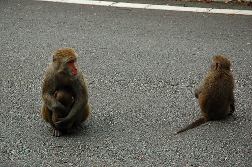 阿里山森林遊樂區叉路,位於台18省道88.5K附近,路口有加油站,小休後續行台18。過了102K鹿林神木之後不久,路旁兩度遇台灣獼猴群,不怕生,似乎習慣人類的餵養,聽說有的還會搶奪遊客車內的食物。H2181m |