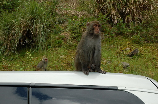 15:05 台灣獼猴跳上車頂。 |