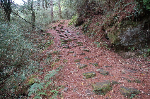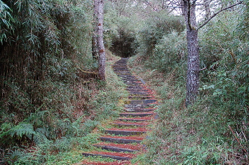 出發,循寬大的石階步道往上,步道中雜草叢生,不算是很熱門的樣子。鹿林山亦可從塔塔加起登,雖然風景較美,但行程較長,為了省時間,這回選擇由此直上登頂。 |
