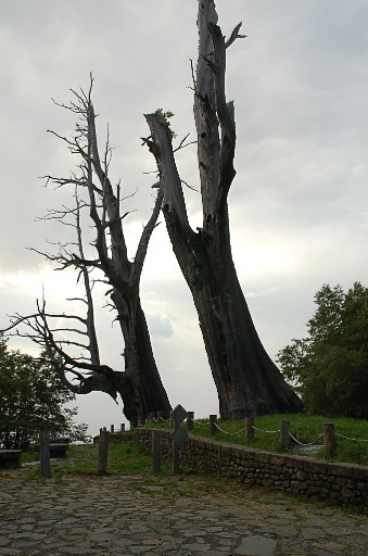 夫妻樹,位於台21省道(新中橫公路)142K附近,為新中橫的著名地標,停車拍照。『夫妻樹是森林火燒的見證,因1963(民國52)年塔塔加地區森林大火所造成。這兩棵紅檜巨木受火的摧殘,生機已喪,淒然枯立於此,形同夫妻相偎相依、至死不渝。...』續行台21,至111K轉入桐子林的民宿。H2467m |