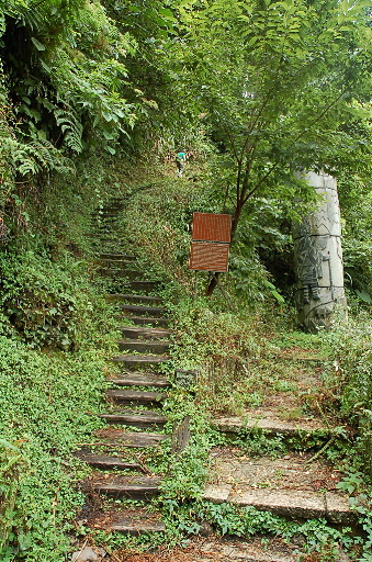 出發,循石階步道往上。八通關古道從此處的東埔登山口走到玉里南安瓦拉米全程約需七日,一般遊客只開放到雲龍瀑布,步道約3.9K。 |