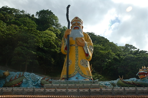 烘爐地下方停車場,有座超大的土地公像,旁邊有步道可上南山福德宮。停車場旁展望極佳,可俯瞰中和地區、遠眺台北市。因步道太陡,我們決定續行車道至更高處的另一停車場。車道兩旁偶可見到巨大的恐龍模型,小朋友超愛的,數次停車拍照。H176m |