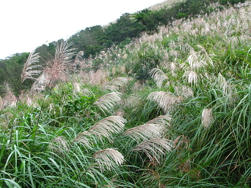 續行,基石處有芒草山路循稜而下,可銜接瑞泉古道。沿途仍是芒草區為大宗,只偶爾經過短暫的樹林內,芒草尚不礙事,倒是要特別留意神出鬼沒的懸鉤子刺人。 |