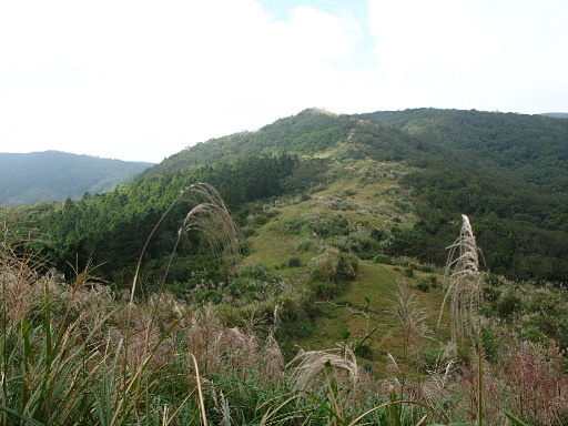 續行,取左循草原稜脈往大尖山靠近,登山口在靠近富士古道這一側的芒草區內,路條少,但進入後其實路況還不錯。這條山路全程幾乎都是芒草區,秋日正好賞芒。 |