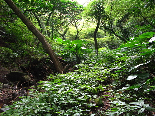 第二草原,位於支稜上,往北海岸之展望不錯。續行立刻再入樹林。H738m |