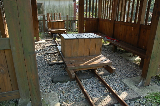 鹿寮坑輕便車站,特地鋪設一小段鐵軌供後人憑弔。『友蚋溪谷流域早期煤礦礦藏豐富,昔日對外的聯絡以輕便車為主,鹿寮坑輕便車站就位於友蚋溪跨鹿寮橋的鹿寮二坑線上。...』車站內特地放了兩輛台車,其中一輛可以推動,很好玩。H39m |
