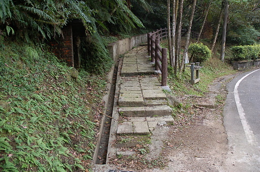 獨立坑步道口,石階步道上往獨立坑100公尺,回友新橋500公尺。H28m |