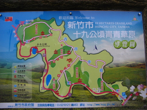 新竹香山青青草原之賞櫻街入口停車場,從二高茄苳交流道(103K)下,左轉往香山,沿途叉路口幾乎都有青青草原指標,因時間緊迫,選擇較近的入口,另一端為大坪頂入口。青青草原佔地十九公頃,有命名的草原計有五處,除了大坪頂入口端的青青草原之外,依序為第一、第二、第三、櫻花草原。H77m |