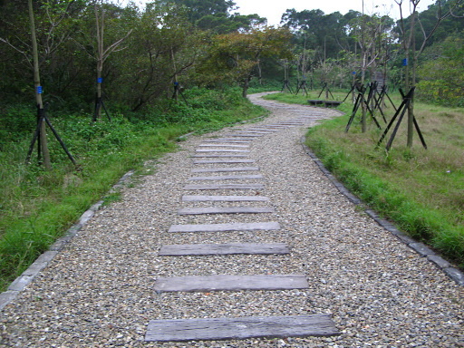 青青步道叉路,右側為寬大枕木步道,往青青草原,取之。青青步道繞著園區外圍,依山勢而建,略有起伏,但相當好走。H77m |