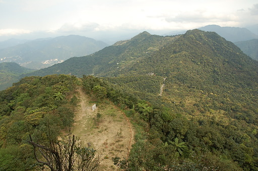 獅仔頭山,858m,一等三角點,又稱為獅子頭山、獅頭山。台灣小百岳。附近也設了觀景台,展望與前峰觀景台差不多,比以前看不到風景好很多。俯瞰大丘田山、塗潭山、大台北華城、秀岡山莊、康橋中小學。休息。H862m |