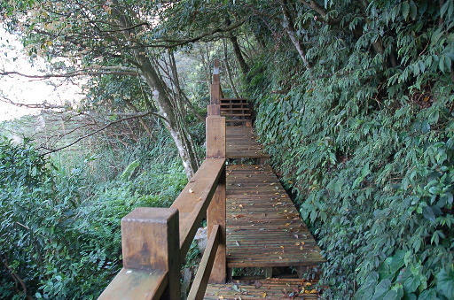 出發,循好走的木棧道往上,不久轉為枕木步道,除了一小段路沒有鋪面,一點點崎嶇之外,算是非常好走的步道。 |