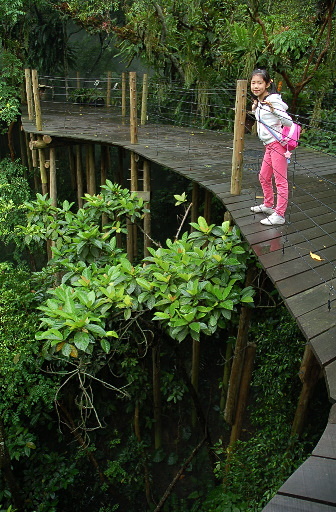 熱帶雨林空中步道,短短的高架木棧道,營造熱帶雨林風貌,可就近觀察樹幹層,繞個小圈回。H166m |