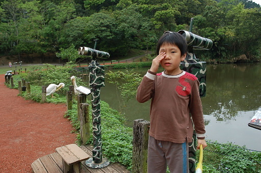 天鵝湖,鄰近入口,先逛一圈。湖中除了常見的綠頭鴨、白天鵝之外,還有較少見到的黑天鵝、鵜鶘等禽類。環湖步道平緩,可推嬰兒車。後段步道埋設枕木,反而有點顛頗較難行車。繞回園區主線之後,續前行不遠就是遊客服務中心。H175m |