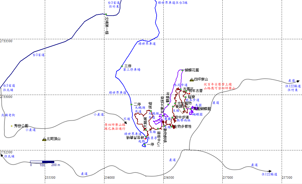 回到園區入口,驅車循台3線續往北埔,再轉往冷泉方向。H174m |