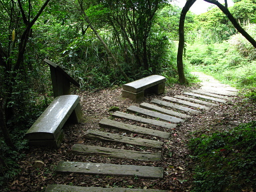 第二步道口,取左上,離開水泥車道。中途有些步道叉路,都無說明,取稜線上主線步道而行。H100m |