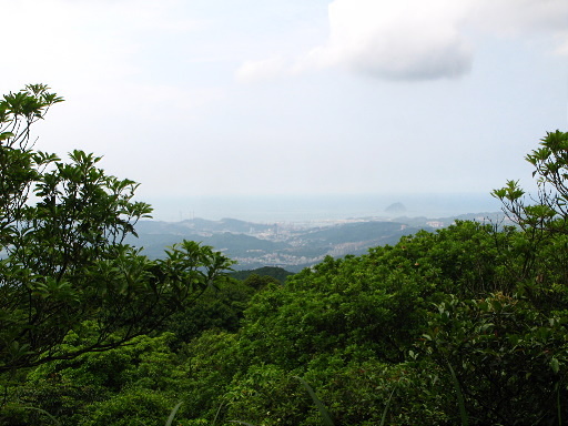 續行,往泰安瀑布、石門山,路況仍佳。中途的陡坡展望特佳,比山頂好很多,遠眺七堵。 |