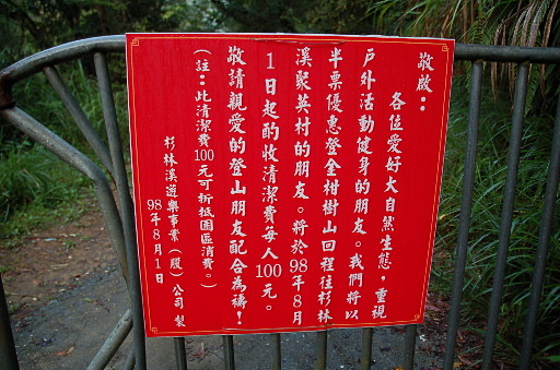 鐵門,告示牌上說:山友登金柑樹山由此進入園區得補半票100元,可抵消費。繞過之後的林道勉強可行車,蜿蜒上行。H1661m |