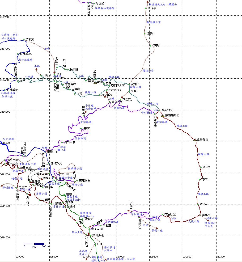 月上橋,叉路,左往杜鵑森林步道,直行往燕庵瀑布,直行觀瀑再回。H1706m |