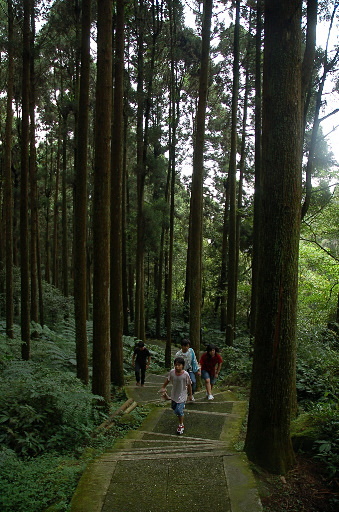 回到神木林道叉路口,取右進入神木林道,林道蜿蜒向上,林蔭敝天,走起來比較舒適,如欲求快,可走賞景步道或幽靜步道。H1155m |