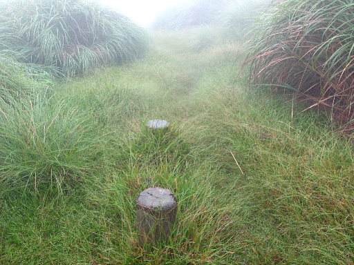 擎天崗環形步道,左往竹篙山1.5km、環形步道入口2Km,直行往環形步道入口0.5Km、遊客中心,取左。下雨天視線不良,僅隱約見到竹篙山,因雨省略。H764m |