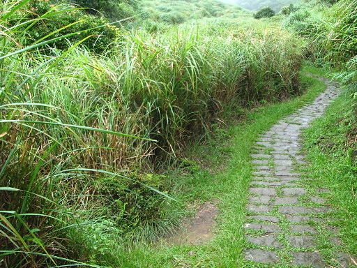 續行,山頂為叉路,左回石階步道,右下往瑞泉古道鐵門處,取左。中途經一處高點,路徑不明,差一點走錯稜線,退回往下切,不久出現草地,很快就回到通往擎天崗的石階步道。 |