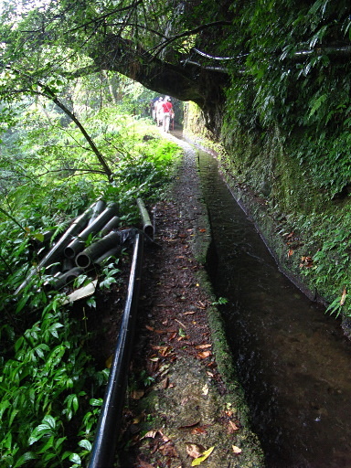 坪頂古圳鐵門,竟然沒上鎖,如果上鎖,旁邊另有狗洞可鑽。過鐵門後就是叉路,左下往登峰圳,直行仍為坪頂古圳,取左。稍後過溪。H493m |