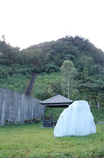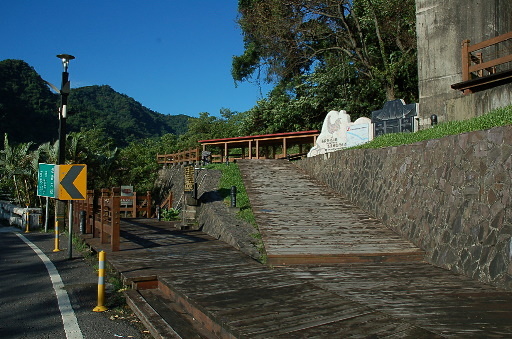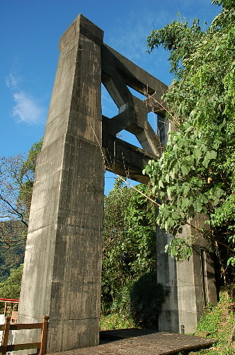 登天步道東側入口,位於集集大橋橋頭,入口上方並有古吊橋橋墩。這個步道入口同時也是〝開闢鴻荒石碣〞入口,真巧,順訪之。H219m |