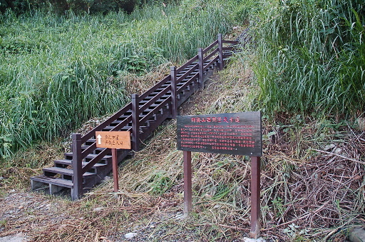 回到集集大橋下,只注意到旁邊的「八通關古道」歷史景點解說牌,還是沒發現『開闢鴻荒』四個字。因時間有限,只好放棄找尋,我還一度懷疑石碣會不會是被落石掩埋了咧。 |