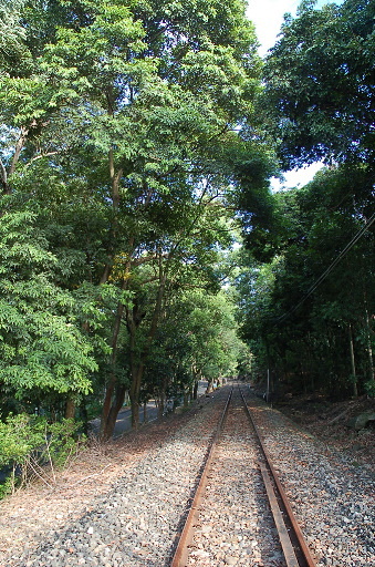 回到152縣道(綠色隧道)合作農場驛站亭,這時的綠色隧道光線較佳,不過我還是決定走走集集線鐵道,涼亭旁有小路可上鐵道。H222m |