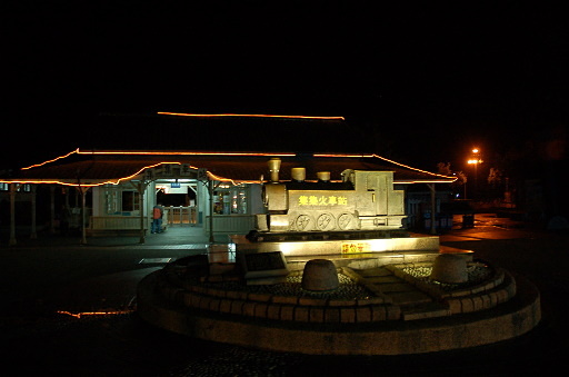集集車站,2010年『南投火車好多節』活動剛結束,加上部份鐵道停駛,遊客略減。午後開始飄雨,先至車站旁的商店內逛逛。逛完之後出來透透氣,發現有一班特生中心保育教育館假日免費接駁專車正要開,決定去參觀避雨。H247m |