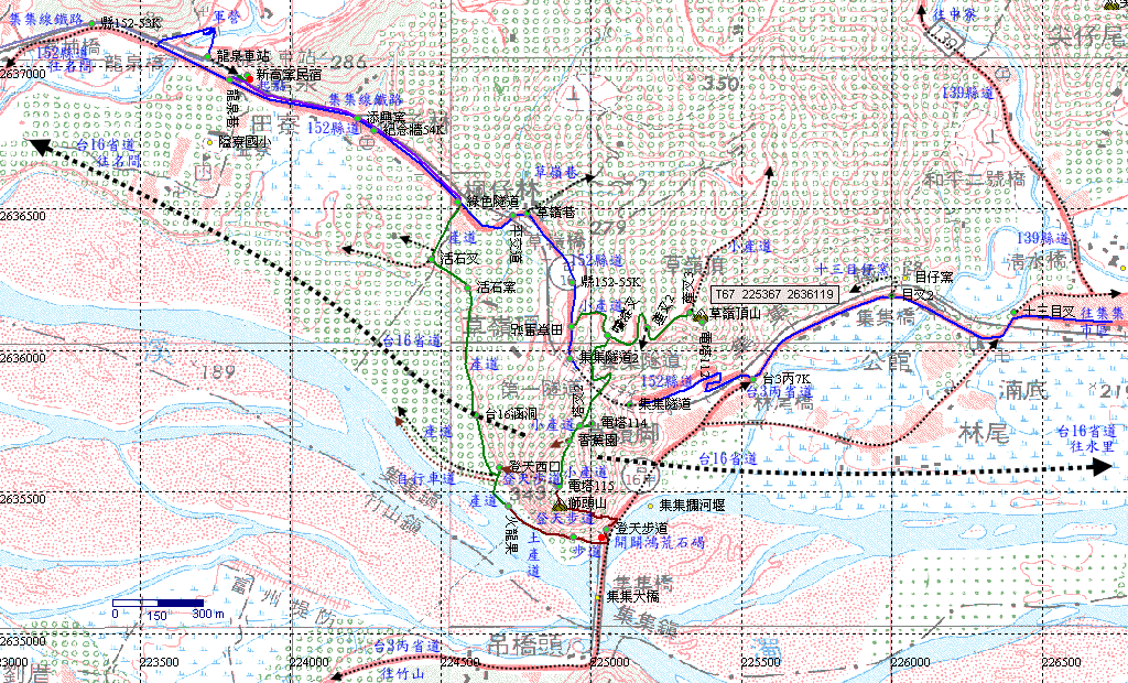 回到噴漆叉路,決定探一下噴漆所指為何?或許能通到獅頭山?H280m |