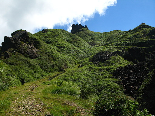 續行,登頂前最末段的石坡需拉繩而上,難度不高。 |