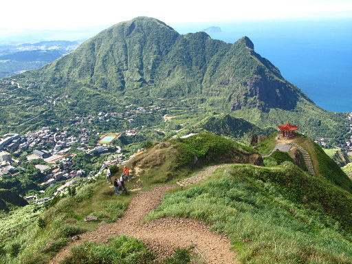 地質公園步道口,取右進入石階步道下往金瓜石。這條步道上眺望茶壺山真的是山如其名。H600m |